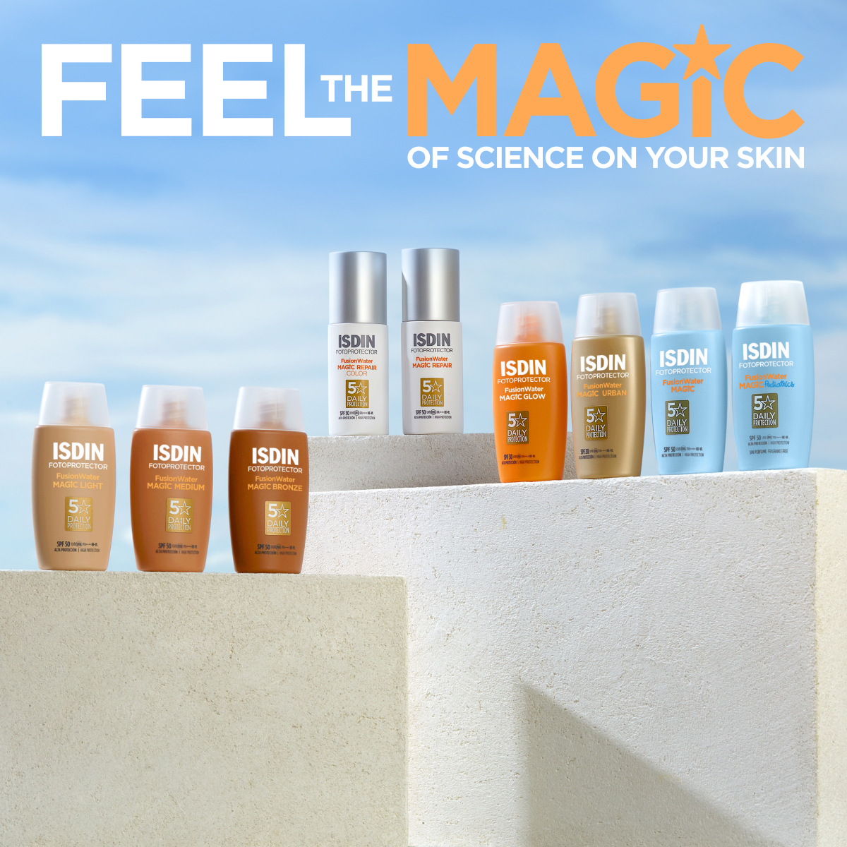 Protege el rostro del niño y del bebé con Fusion Water MAGIC Pediatrics SPF 50. Tiene una textura ultraligera que se absorbe de forma inmediata, hidrata la piel intensamente y aporta una alta protección UVB/UVA.