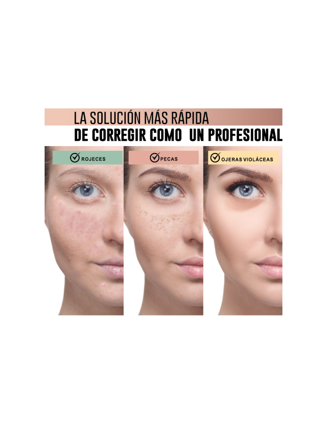 - BEIGE: ayuda a corregir pequeñas imperfecciones y ojeras.