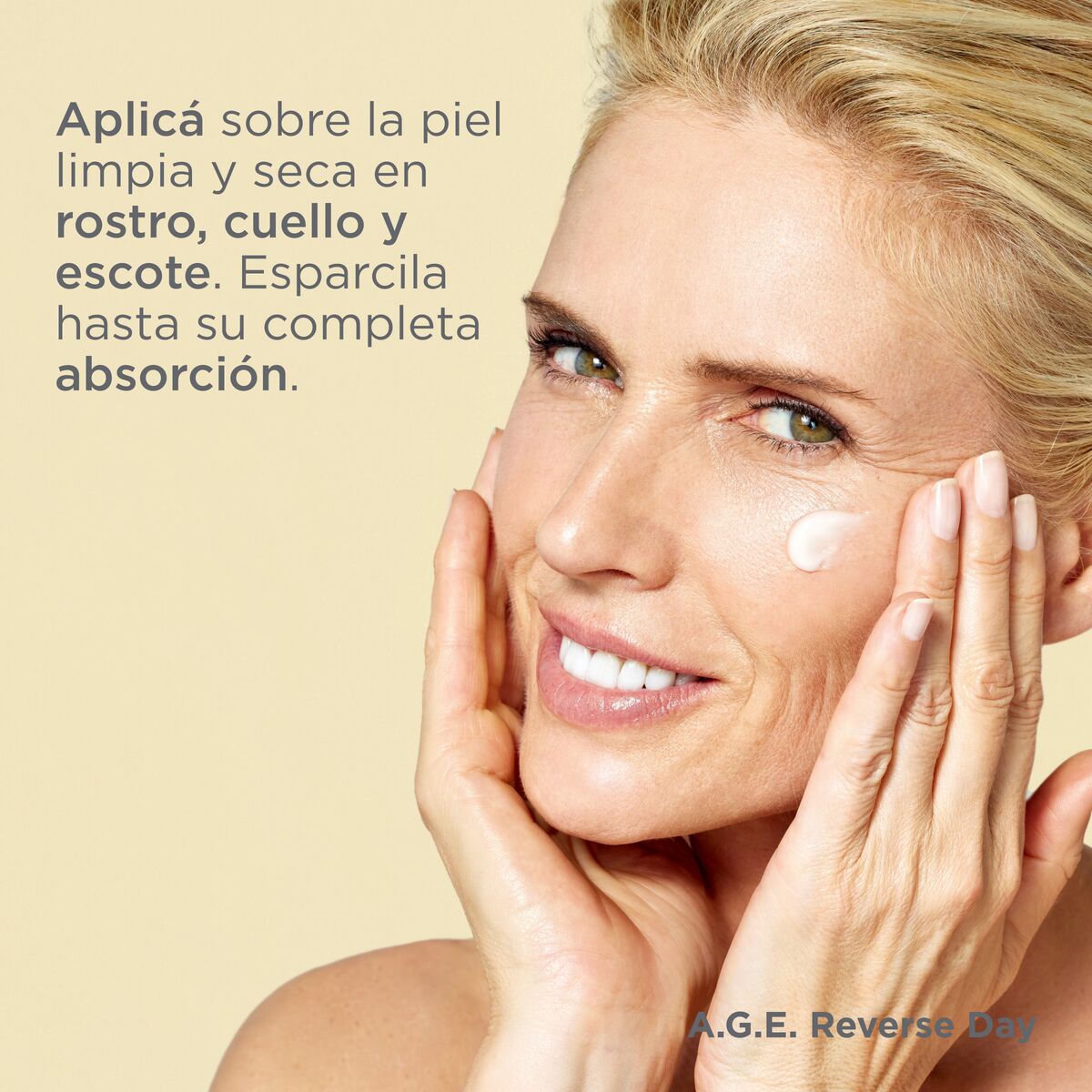 Aplicar directamente sobre la piel limpia y seca en rostro y cuello, extendiéndola hasta su completa absorción. Precauciones: uso externo. Mantener fuera del alcance de los niños. Evitar el contacto con ojos y mucosas. Probado dermatológicamente y oftalmológicamente. No sensibilizante.
