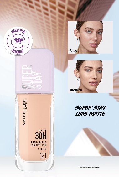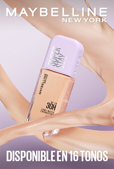 ¡Nueva Superstay Lumi Matte, de Maybelline NY! Base de maquillaje líquida que se ve y se siente liviana, dejando la piel con un acabado luminoso a prueba de agua y transpiración.